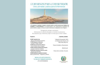 I Jornadas sobre Alzheimer y otras Demencias05/11/2025 XI Jornadas sobre “Ética y Buenas Prácticas en Salud Mental”05/11/2025 IX Jornada Castellano-Manchega de Enfermería de Salud Mental/ AEESME06/11/2025 Jornada Lúdica: Cuidarnos para cuidar mejor08/11/2025 Jornadas realizadasCongreso del CIE 2025 Helsinki09/06/2025 I Jornada Enfermería y Salud Digital “La Luz del Cuidado”03/06/2025 X Jornada de Lactancia Materna09/05/2025 II Jornada de Genética ‘Avances en el diagnóstico genético y tratamiento de las enfermedades genéticas y raras’29/04/2025 XLII Congreso Nacional de Enfermería de Salud Mental.09/04/2025 IV Jornadas de Tutelaje Clínico03/04/2025 I Jornada Aspectos ético-legales en la atención obstétrico-ginecológica06/03/2025 (Aplazada) Charla informativa cooperativa de viviendas colaborativas La Rosaleda20/02/2025 III Jornadas de Enfermeras y Salud Escolar08/02/2025 Jornada técnica: Vacunación responsable: uniendo esfuerzos para combatir la gripe y el covid10/01/2025 Webinar Carreras investigadoras emergentes: trayectorias profesionales fuera de la universidad19/12/2024 II Jornadas de Investigación del Colegio Oficial de Enfermería de Córdoba29/11/2024 I Jornadas Internacionales IV Nacionales GASBI 202427/11/2024 III Jornadas COPTOMUR “Experiencias de terapia ocupacional en Geriatría”27/11/2024 Jornadas sobre discapacidad orgánica y patologías crónicas19/11/2024 VII Jornada “Sobre el trastorno límite personalidad”15/11/2024 V Jornada de Enfermería de Salud Mental AEESME/ Comunidad Valenciana15/11/2024 Caminando hacia la equidad en salud. Violencia de género y determinantes sociales en las mujeres gitanas12/11/2024 Jornada sobre Enfermería e inteligencia artificial. Presente y futuro11/11/2024 III Jornadas Regionales Cuidados Paliativos08/11/2024 I Jornadas Regionales de Triaje Intrahospitalario07/11/2024 Voces invisibles. Jornada de formación y sensibilización en materia de hijos/as víctimas de violencia de género.28/10/2024 VIII Jornada de Fragilidad y Caídas en Personas Mayores24/10/2024 18 Congreso Nacional de Enfermería Quirúrgica23/10/2024 I Jornada de Cooperación de la ONG Pediatría Solidaria22/10/2024 Paliando desde el voluntariado21/10/2024 V Congreso Associació Catalana de Llevadores // XXII Congreso Federación Asociaciones de Matronas de España17/10/2024 Jornada ‘Recorrido de la Comunidad GPS-Murcia’11/10/2024 I Jornada Fundación Cuidativos. Cuidar y acompañar al final de la vida.10/10/2024 IV Congreso Nacional de Asociaciones de Enfermería Pediátrica03/10/2024 Jornada ‘Hacia una nueva ley de infancia y adolescencia en la Región de Murcia’ (online)25/09/2024 4ª Jornada de Cuidados de Salud basados en la evidencia en la Comunidad Valenciana20/09/2024 VIII Congreso Nacional AEES de Enfermería y salud: innovación y práctica avanzada, haciendo camino19/09/2024 II Jornadas del Alzheimer18/09/2024 I Jornada Canaria de Enfermería Escolar28/06/2024 #forINDEX 50 Reunión Internacional de Investigación en Cuidados20/06/2024 V Encuentro de Enfermería de Salud Mental AEESME Castilla y León14/06/2024 VIII Jornada Castellano Manchega de Enfermería de Salud Mental / AEESME11/06/2024 I Congreso de la Sociedad de Desinfección y Esterilización (SEDE)06/06/2024 II Jornada Internacional #Evidénciate (con almuerzo incluido)23/05/2024 II Jornada Internacional #Evidénciate (sin almuerzo)23/05/2024 XVI Congreso Nacional Bioética y Complejidad23/05/2024 XLIII Congreso Nacional de Enfermería de Cuidados Intensivos Pediátricos y Neonatales15/05/2024 Microbiota: interacción y cuidados21/03/2024 XLI Congreso Nacional de Enfermería de Salud Mental20/03/2024 Jornada de presentación del estudio “La atención primaria de salud en la Región de Murcia: situación actual y propuesta de mejora”15/03/2024 III Jornadas de Tutelaje Clínico13/03/2024 I Congreso Nacional de Inteligencia Artificial en Enfermería08/03/2024 I Mesa de Prescripción Enfermera28/02/2024 II Congreso Internacional y XIII Nacional de Medicina y Enfermería del Trabajo22/02/2024 La inteligencia artificial en el trabajo cotidiano de la enfermera: utilizando ChatGPT de manera creativa20/02/2024 I Jornada de Precariedad Laboral en Enfermería15/02/2024 II Jornada Centro Español para los Cuidados de Salud Basados en la Evidencia (CECBE) Región de Murcia31/01/2024 XIX Congreso de la Sociedad Española de Especialistas en Tabaquismo (SEDET)26/01/2024 Microbiota, conoce tu holobionte y sus cuidados12/12/2023 I Jornada de Enfermería de Salud Mental AEESME/Región de Murcia30/11/2023 Foro I+E-2023 V Reunión Internacional de Investigación y Educación Superior en Enfermería29/11/2023 Enfermería en Atención Primaria: un acercamiento a los procesos asistenciales29/11/2023 II Jornadas de Enfermería Escolar de la Región de Murcia24/11/2023 VIII Jornadas IMIB24/11/2023 VI Congreso nacional de comunicación con el paciente y su familia23/11/2023 Jornada Familia Cuidando “Cuidar cuidándose”23/11/2023 XXX Taller Docente SEEGG 2023: Hacemos frente al edadismo17/11/2023 El cuidado de la salud en las sociedades primitivas: una visión holística del bienestar individual y social14/11/2023 VII Jornadas nacionales Proyección Enfermera10/11/2023 12º Congreso Nacional de Fitoterapia de SEFIT09/11/2023 Charla sobre educación financiera “La importancia de tener nuestras finanzas organizadas”09/11/2023 Jornada de Presentación de Resultados de la Investigación sobre Autocuidado de profesionales en Violencia de Género e Intercambio de Experiencias09/11/2023 Círculo narrativo: “Espiritualidad, una dimensión esencial en el cuidado de la salud”07/11/2023 I Jornadas Experiencias de terapia ocupacional en salud física27/10/2023 Jornada de Oncología integrativa y evidencia científica21/10/2023 X Jornada asturiana de Enfermería en Salud Mental/AEESME20/10/2023 Charla-taller «Haz tu compra del súper, saludable y con diabetes, con Don Sacarino»05