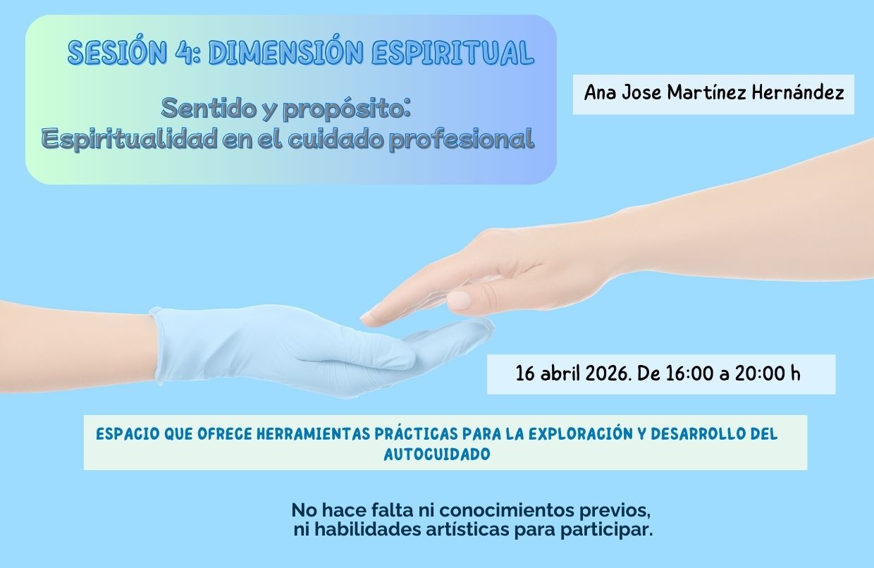 La actividad será impartida por Ana José Martínez Hernández y propone un espacio de reflexión y aprendizaje orientado a integrar la dimensión espiritual dentro del autocuidado de las enfermeras y enfermeros.