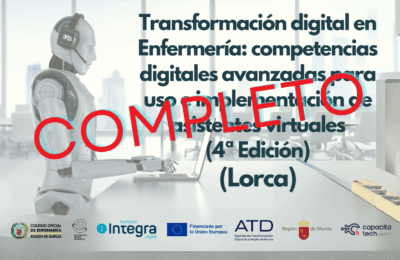 2º trimestreNo hay cursos programados3er y 4º trimestreTaller Soporte vital inmediato (Programa Perséfone Plus)03/11/2025Operador de instalaciones de radiodiagnóstico médico (Murcia)03/11/2025Curso Cuidado integral de pacientes con heridas crónicas03/11/2025Jornada de autodefensa personal sanitario04/11/2025Transformación digital en Enfermería: competencias digitales avanzadas para uso e implementación de asistentes virtuales (4ª edición) Lorca06/11/2025Ecografía para Enfermería (Cartagena) 5ª Edición11/11/2025Ecografía para Enfermería Avanzado (Murcia) (2 edición)01/12/2025Cursos ya realizadosCirugía menor y Manejo de heridas Avanzado28/10/2025Integración de la medicina tradicional china en la práctica enfermera para la gestión de la salud22/10/2025Ecografía para Enfermería Avanzada13/10/2025Taller de ventilación mecánica invasiva y no invasiva en emergencias09/10/2025Taller Terapia compresiva en úlceras de miembro inferior08/10/2025Transformación digital en Enfermería: competencias digitales avanzadas para uso e implementación de asistentes virtuales (3º Edición) Cartagena07/10/2025Operador de instalaciones de radiodiagnóstico médico (Cartagena)06/10/2025Taller Oposita con éxito06/10/2025Taller Reflexología podal para enfermería02/10/2025Taller el proceso de morir en la enfermería01/10/2025Introducción a la Dermoestéica (4ª Edición)29/09/2025Taller Index (Murcia): ‘Hablar con Impacto: Técnicas para una Comunicación Oral Efectiva’25/09/2025Dermoestética Avanzada25/09/2025Introducción a la Dermoestética (3ª Edición)24/09/2025Transformación digital en Enfermería: competencias digitales avanzadas para uso e implementación de asistentes virtuales (2ª Edición) Murcia15/09/2025Curso Actualización de suturas perineales para matronas (3ª edición)26/06/2025Manejo del Parto en el ámbito Extrahospitalario: estrategias para la práctica clínica en emergencias25/06/2025Curso Actualización de suturas perineales para matronas (2ª edición)24/06/2025Curso Actualización de suturas perineales para matronas23/06/2025Ecografía para enfermería. 2ª edición (sede Murcia)10/06/2025Ecografía para Enfermería sede Murcia (3ª edición)10/06/2025Cirugía menor y manejo de heridas (sede Murcia // 3ª edición)04/06/2025Creciendo desde adentro26/05/2025Acceso intraóseo: manejo y cuidados de enfermería en situaciones de urgencia y emergencia (sede Cartagena)19/05/2025Transformación digital en Enfermería: competencias digitales avanzadas para uso e implementación de asistentes virtuales19/05/2025Taller Index (Murcia): ‘Estrategias sencillas para lograr impacto social en mi investigación08/05/2025Charla ‘Microbiota Interacción y Cuidados’ (Lorca)30/04/20252ª edición cirugía menor y manejo de heridas (sede Murcia)28/04/2025Curso de Ecografía para Enfermería (Cartagena)28/04/2025Taller de actualización de terapia inhalada (Cartagena)23/04/2025Cirugía menor y manejo de Heridas (sede Cartagena)08/04/2025Introducción a la dermoestética08/04/2025Introducción a la dermoestética (2ªedición)07/04/2025Taller de acceso intraóseo: manejo y cuidados de enfermería en situaciones de urgencia y emergencia (Murcia)18/03/2025Operador de instalaciones de radiodiagnóstico (Murcia, Semipresencial)17/03/2025Cirugía menor y manejo de heridas (Murcia)04/03/2025Operador de instalaciones de radiodiagnóstico (Caravaca, Semipresencial)03/03/2025Taller de actualización en terapia inhalada25/02/2025Operador de instalaciones de radiodiagnóstico (Cartagena, Semipresencial)17/02/2025Taller de herramientas de IA aplicadas a la Enfermería13/02/2025Taller de gestión de referencias bibliográficas. Zotero, normas Vancouver y APA27/01/2025Comunicación de resultados científicos en formato póster20/01/2025