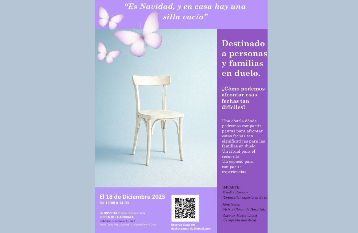 El próximo 18 de diciembre de 2025 se celebrará la charla “Es Navidad, y en casa hay una silla vacía”, una sesión especialmente dirigida a personas y familias que atraviesan un proceso de duelo y que encuentran en las fechas navideñas un momento de especial dificultad emocional.